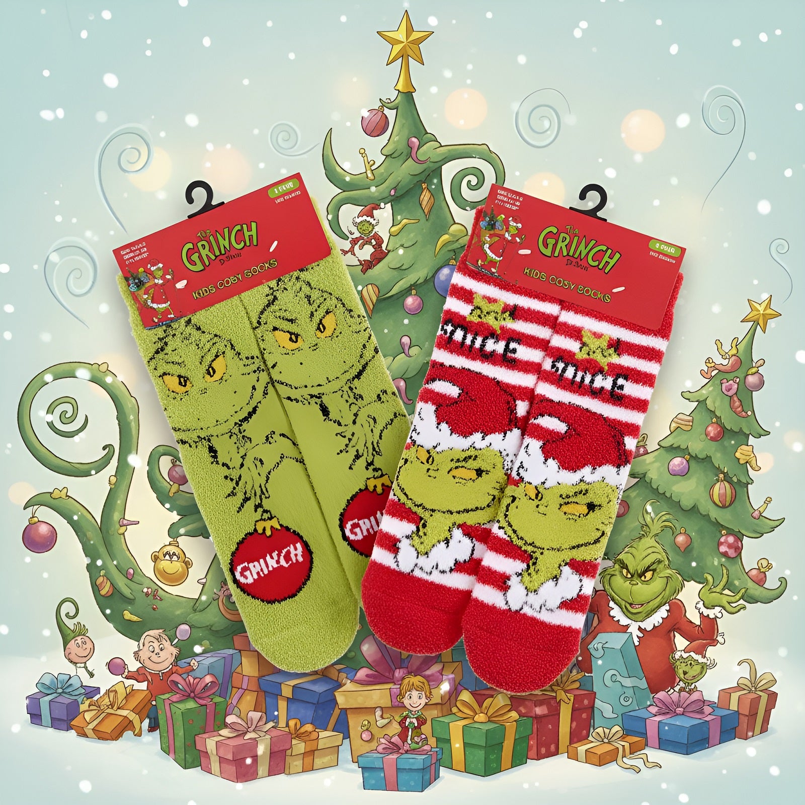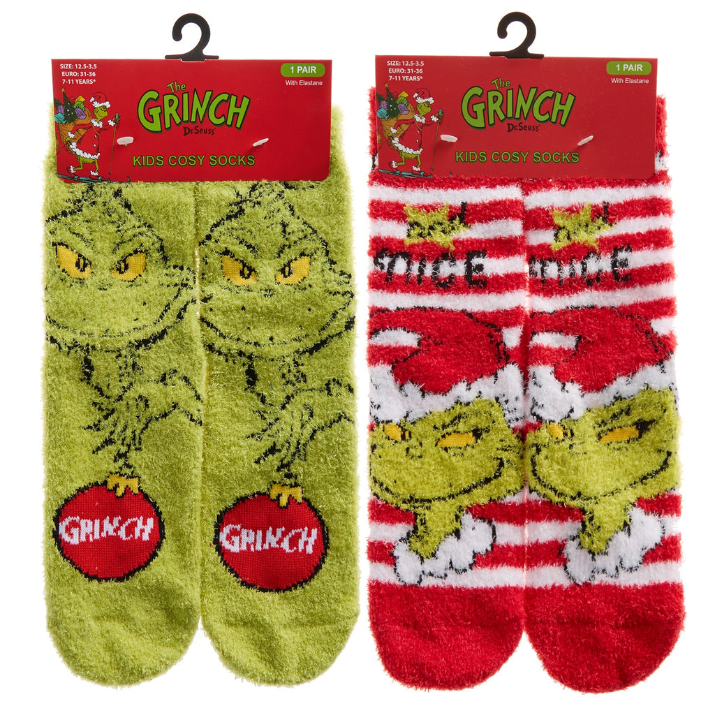 Kids Cosy Thermal Christmas Xams Grinch Socks with Grip (1 pair)