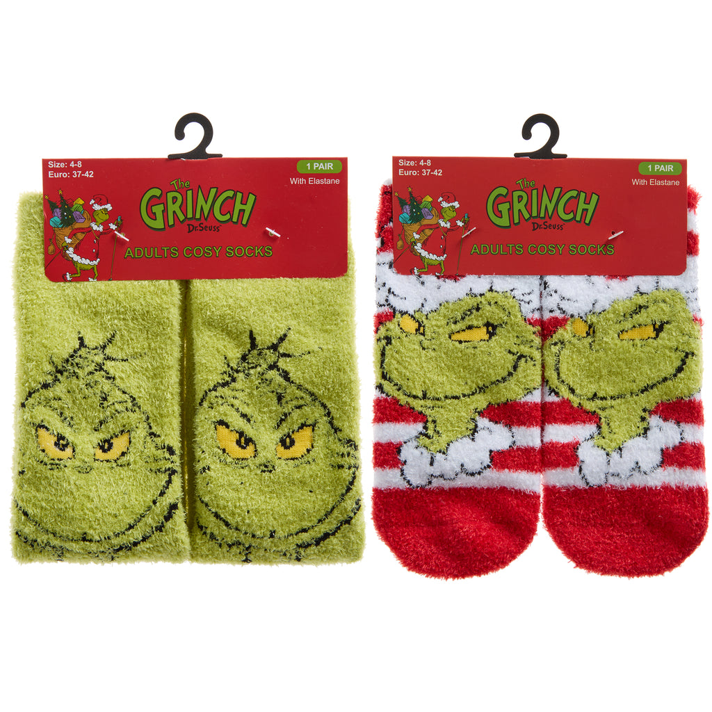 Ladies Women Cosy Thermal Christmas Xams Grinch Socks with Grip (1 pair)
